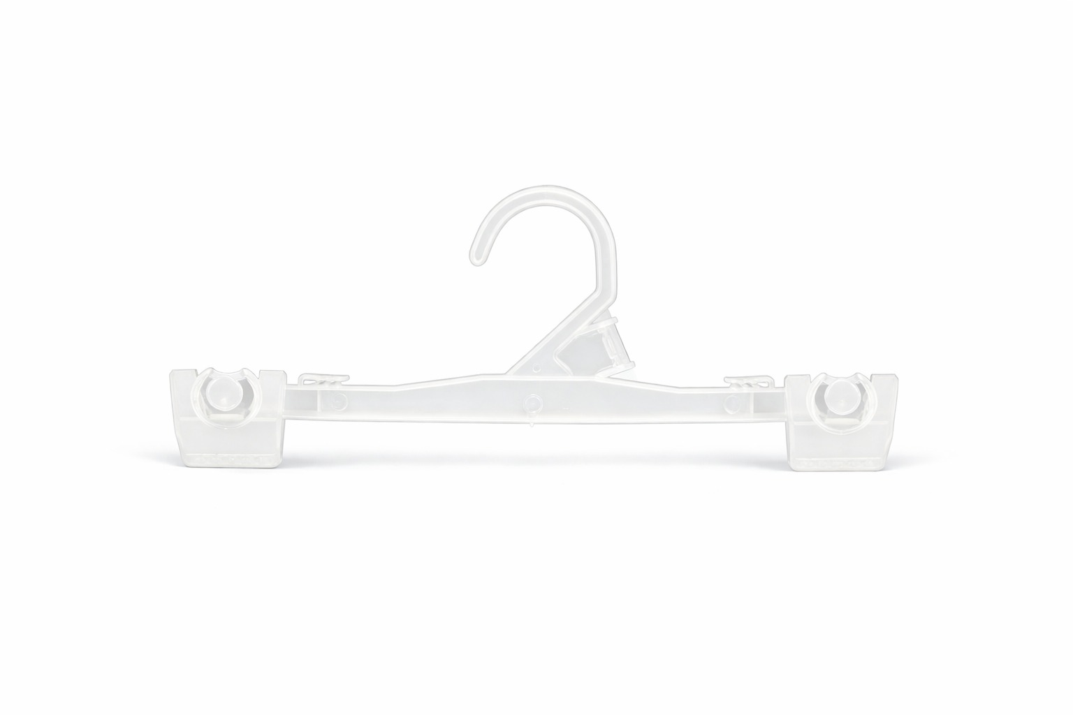 Percha plástica tipo bisagra para pollera, pantalón, lencería, entre otros.