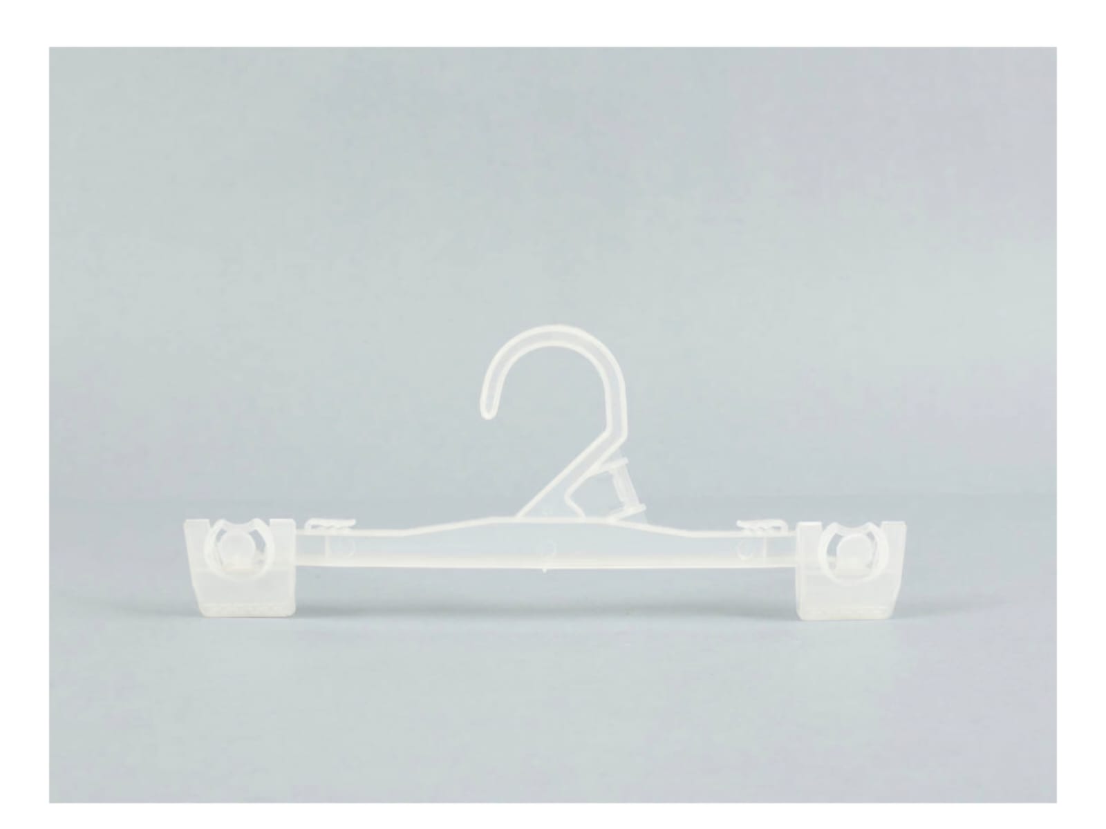 Percha plástica tipo bisagra para pollera, pantalón, lencería, entre otros.